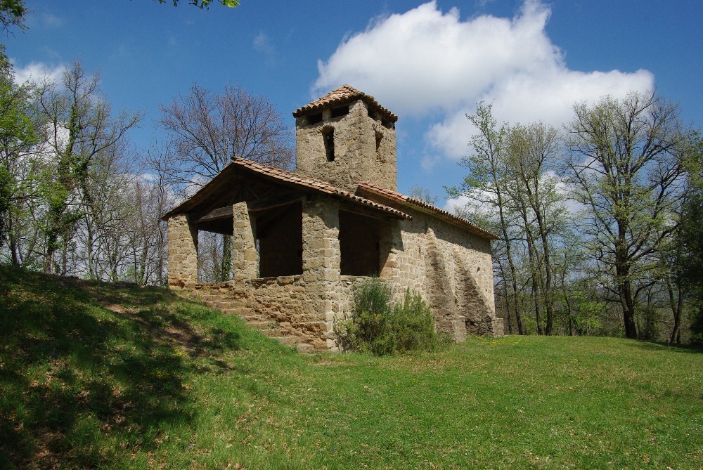 Los rincones de la Vall de Bianya son el cobijo de hasta 16 ermitas románicas. Un fondo de valle con cultivos y prados de pasto, acompañados de recortes de bosques de roble carvallo, con muchas masías esparcidas, configura el paisaje actual, fruto de una intensa historia.