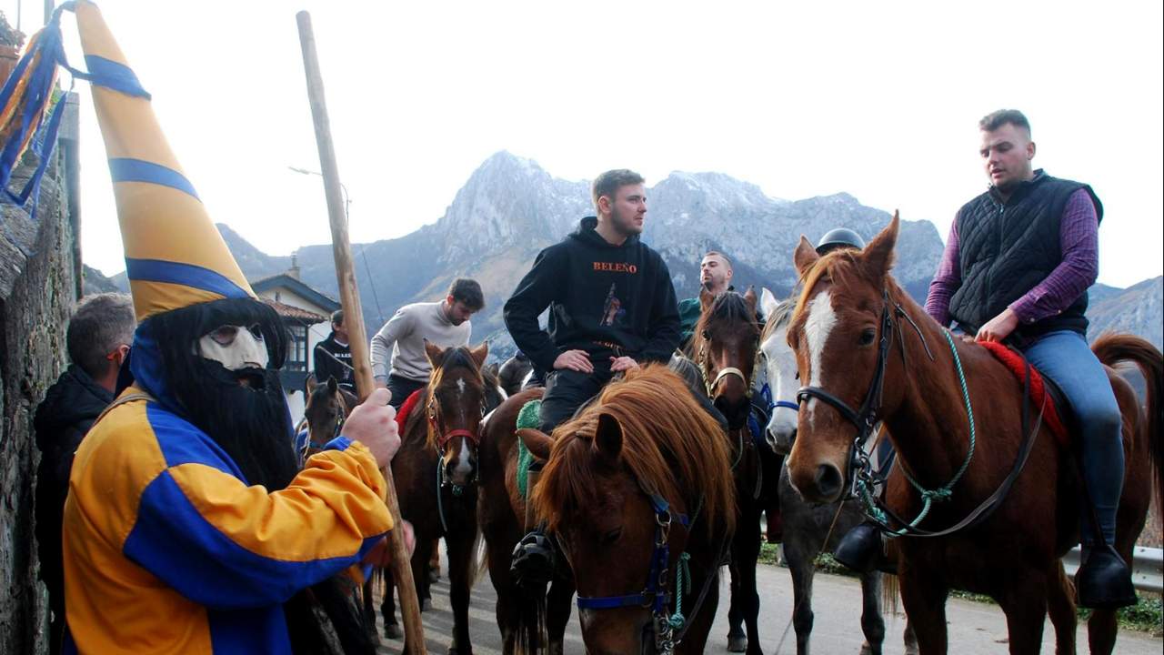 En la madrugada del Año Nuevo se celebra el sorteo que empareja a los mozos y las mozas. El varón debe hacer un obsequio a la moza, y ella le corresponde invitándolo a comer. Al mediodía, los mozos salen a caballo a recorrer las casas del pueblo, pidiendo el aguinaldo y deseando salud y prosperidad a los vecinos. Mientras tanto, aparece la figura del Guirria, un personaje mitológico disfrazado con careta y capirote, que recorre las calles persiguiendo a las mujeres para abrazarlas y a los hombres para marcarlos con ceniza. Todo el pueblo participa en esta fiesta, que culmina con la cena de los mozos organizada con el dinero recaudado.