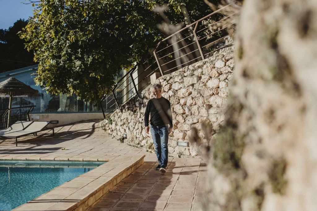 A escasos minutos de ese hide de observación, a las afueras de la población de El Berro, Andrés García nos abre las puertas del Hotel Bajo el Cejo. Situado en el fondo de un barranco, los alrededores del alojamiento nos muestran la zona de montaña con el bosque de pino carrasco, que se alternan con los cultivos tradicionales y de frutales que han alimentado durante años a El Berro.