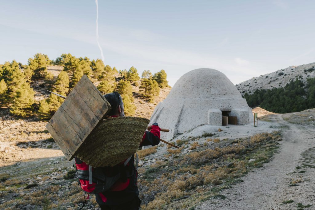 Así, nos vamos a adentrar por los caminos de solana, umbría y hielo porque, aunque a Sierra Espuña se la suele calificar como ‘la sierra del sol’, junto al valle de Leyva, y a más de 1.400 metros de altura, se extienden 28 construcciones que posibilitaron durante siglos la industria de la nieve. Estas 28 fábricas de hielo abastecían a toda la región, incluidas las ciudades de Murcia y Cartagena. Uno de los usos que se le daba a este hielo, y quizás el que más llame la atención, era su uso en hospitales, por lo que “estaba considerado un producto de primera necesidad como el pan” desvela Javier Ramírez, guía y educador ambiental. Con casi siete metros de profundidad, estas construcciones comenzaron a alimentarse de nieve a finales del siglo XVI, allá por 1580. Pero no sería hasta los siglos XVII y XVIII, cuando llegara su auge, aprovechando que las nevadas eran mucho más copiosas. “La técnica consistía en aplastar la nieve a medida que se iba incorporando. Los encargados eran denominados ‘amasadores’, y hacían turnos cada 10 o 15 minutos para evitar congelarse”, explica Javier mientras sujeta un antiguo utensilio para aplastar la nieve. “Mientras, afuera estaban los ‘braceadores’ o ‘arrimados’, que llenaban grandes capazos de esparto de nieve de los alrededores”, añade y recalca la importancia de descubrir estas actividades de antaño de la mano de guía local, “conociendo así las historias y anécdotas de los que viven y han vivido aquí y poniendo en valor esa transmisión oral con la gente del entorno que ha tenido relación con los pozos”.