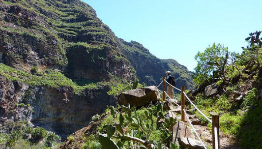 En la parte alta de la isla de La Gomera, declarada en su totalidad Reserva Mundial de la Biosfera, encontramos el Parque Nacional de Garajonay que, a su vez, también es Patrimonio Mundial de la UNESCO. Un Parque que destaca por estar cubierto en su mayor parte por frondosos bosques cuyo permanente verdor contrasta con la aridez de esta isla eminentemente volcánica, y que son una auténtica joya que conserva gran parte de la flora de los bosques que poblaban el área mediterránea hace millones de años, y que fueron desapareciendo a consecuencia del cambio climático que, afortunadamente, no ha afectado en tanta medida a las islas. El Parque Nacional, no sólo destaca por la riqueza tierra adentro, donde se conserva una flora y una fauna exclusivas y únicas en el mundo gracias al aislamiento oceánico, sino que en sus aguas costeras también podemos disfrutar de colonias de cetáceos residentes y otras migratorias.