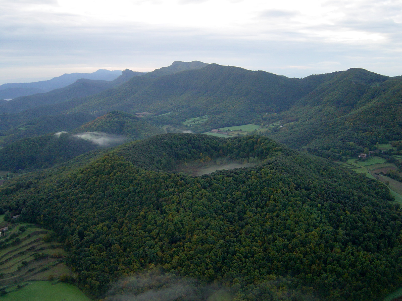 En la zona nororiental de Cataluña encontramos la comarca de montaña de La Garrotxa y, en ella el Parque Natural de la Zona Volcánica de la Garrotxa. Más de 40 volcanes y diversas coladas salpican la mitad sur del parque, mientras que en el norte el paisaje se vuelve abrupto y escarpado predominando los barrancos y desfiladeros. La zona boscosa la encontramos en los valles de Bas, de Hostoles y de Bianya, donde encontramos encinares, robledales y hayedos, estos últimos en los sectores más húmedos.