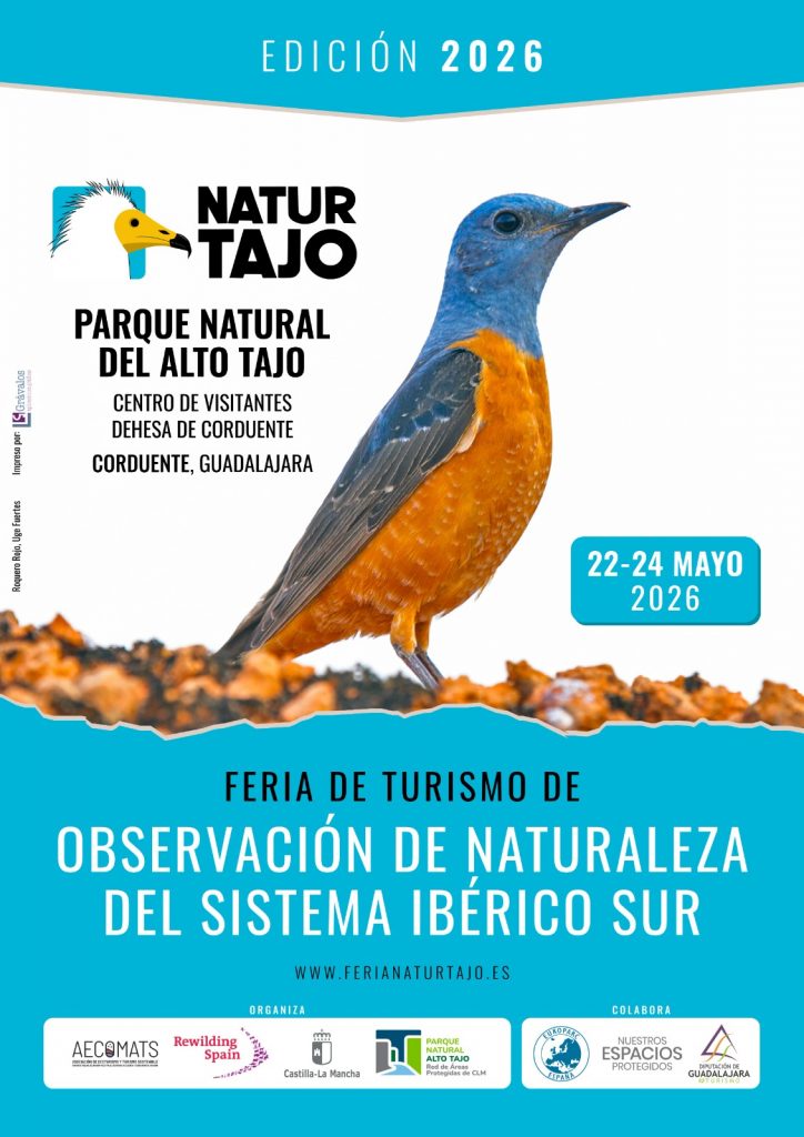 NaturTajo es la feria de referencia del turismo de observación de naturaleza en el Sistema Ibérico Sur, un territorio de enorme valor ecológico que incluye espacios declarados Parque Natural y Geoparque UNESCO, y cuyo estado de conservación lo convierte en uno de los mejores escenarios de España para el turismo de naturaleza. En su edición 2026, la feria regresa al Centro de Visitantes Dehesa de Corduente, en el corazón del Parque Natural del Alto Tajo, durante tres días de mayo.